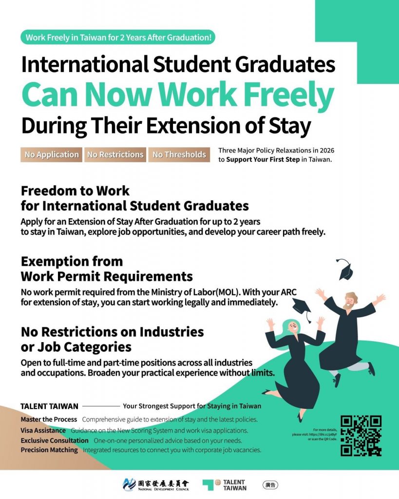 Starting January 1, 2026 , a brand-new measure that most directly affects graduating Overseas Compatriot Students & International Students will officially take effect: “Graduates may engage in work without a work permit for up to two years during the Extension of Stay After Graduation.”